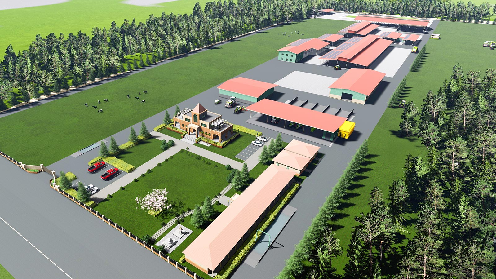 | 建物 | 搾乳牛舎、育成牛舎、病畜棟、飼料庫、機械棟、堆肥棟、社員宿舎、事務所棟など12棟 |