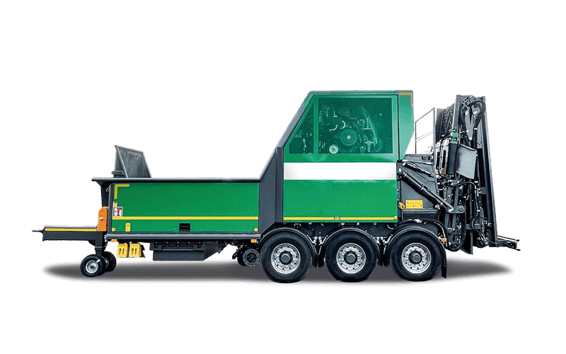 間伐材等の幹材はもちろん、枝葉や梢頭部等の林地残材や木質廃材まで広範な木質物のワンパス、大量処理が可能です。