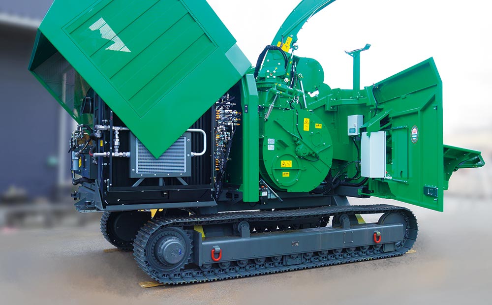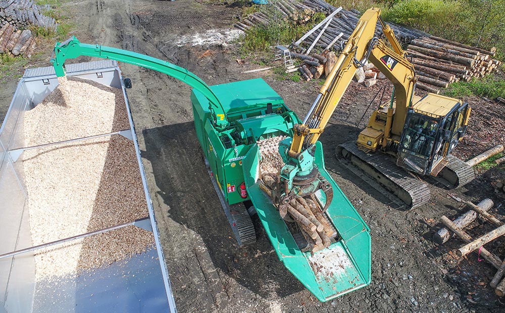 木質バイオマス燃料用切削チップ製造でその処理能力と製品品質に定評のあるウッドハッカー・メガシリーズ。