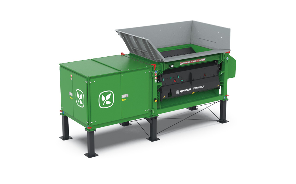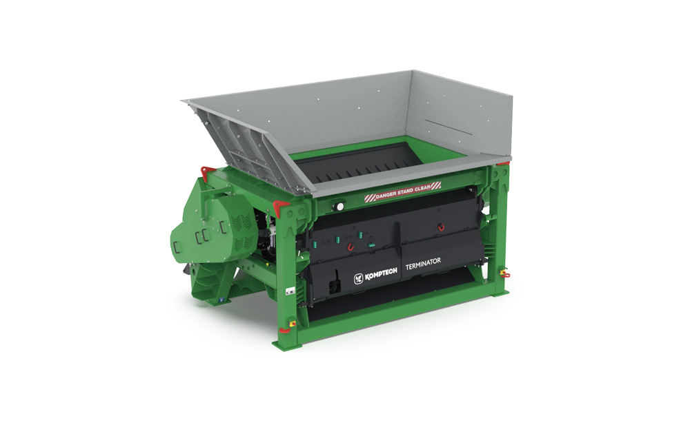 大型一軸汎用破砕機「ターミネーター」は産業廃棄物、一般廃棄物、木質物を含む建設系廃棄物などあらゆる廃棄物を、大量かつ低コストに力強く破砕します。